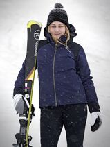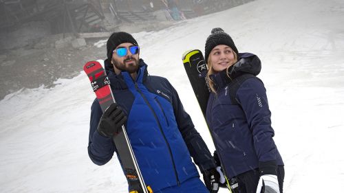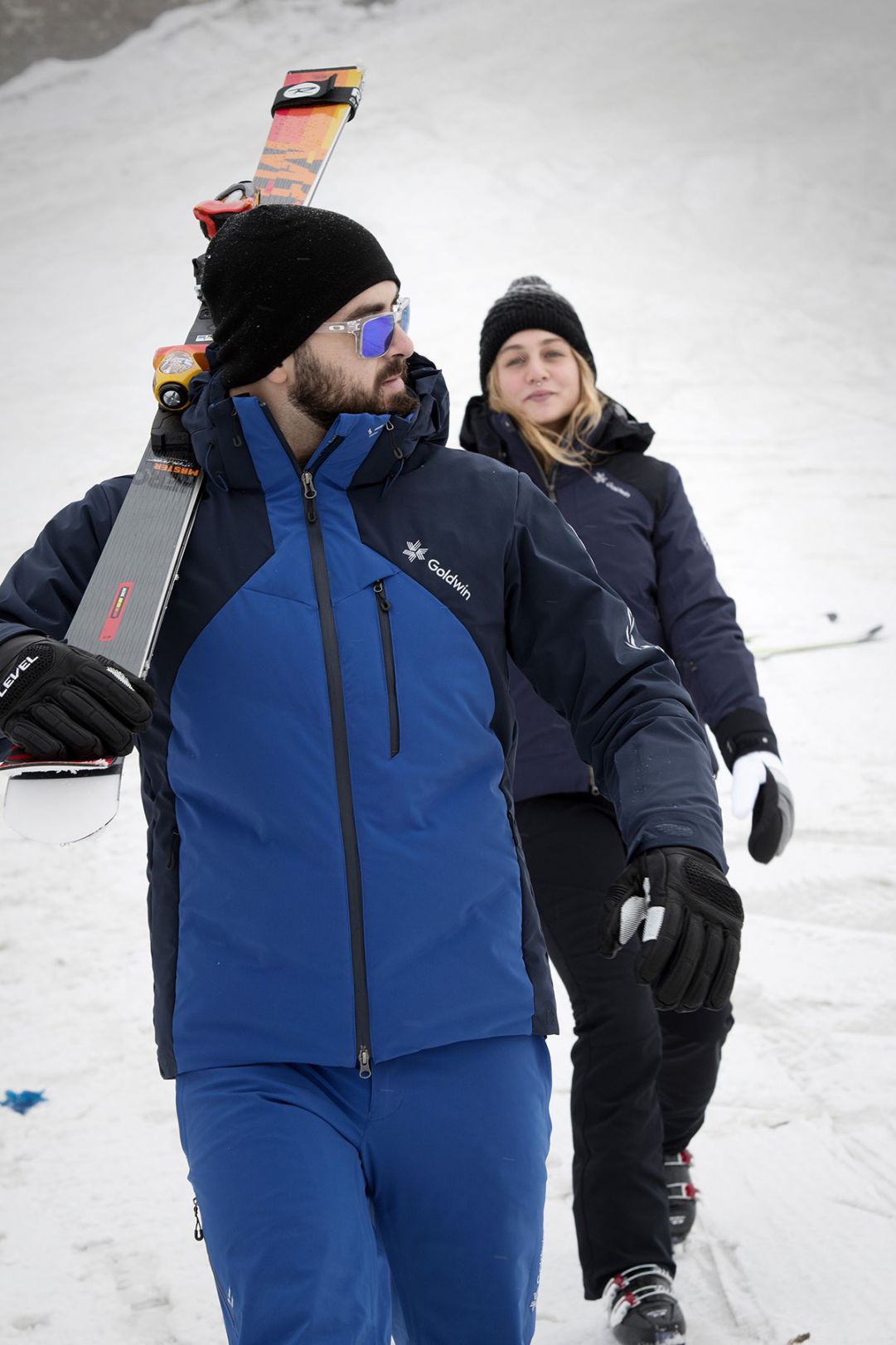 Il nostro sciatore Giulio indossa LUCUS HYBRID DOWN JACKET e G_BLISS PANTS