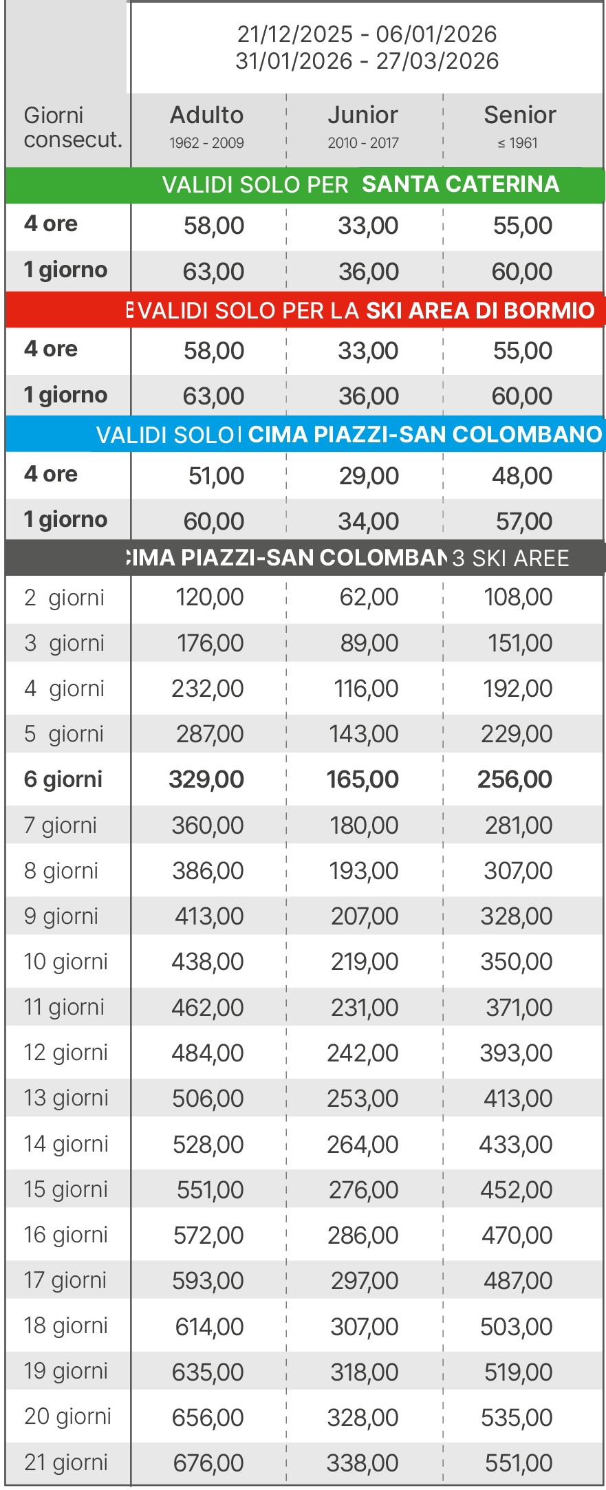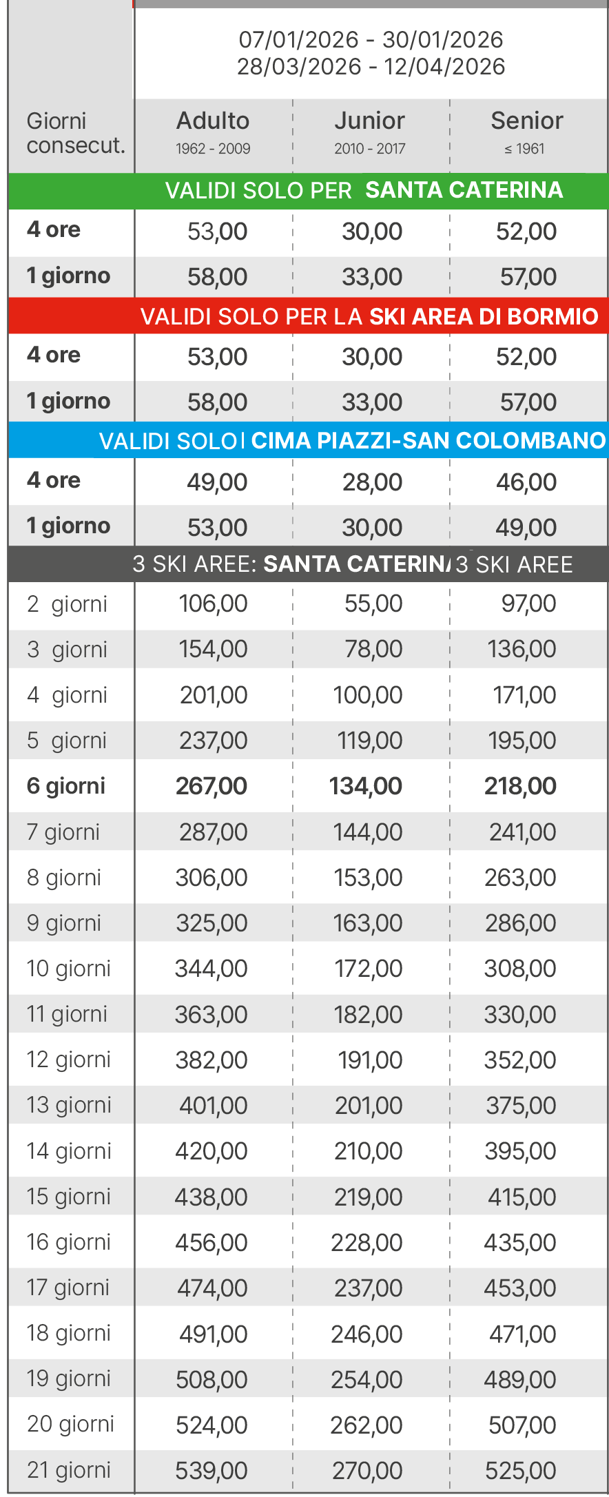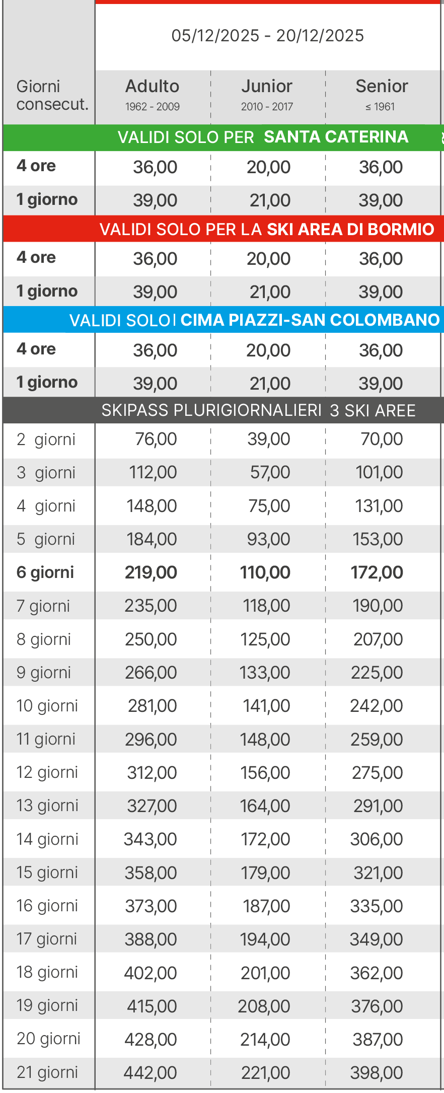 Skipass Alta Stagione Bormio Santa Caterina 2025/2026