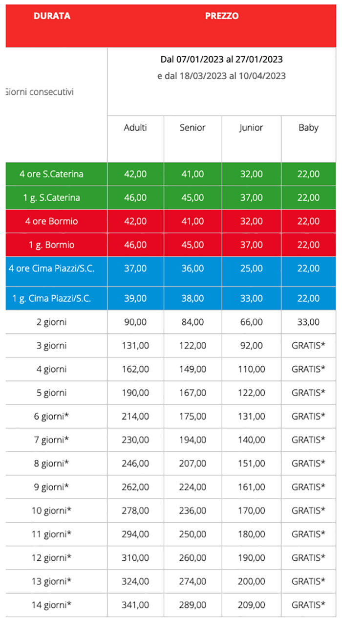 Skipass Bassa Stagione Bormio Santa Caterina 2022/2023