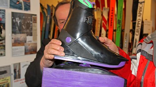 1980. Sci in metallo e plastica, solette in grafite. Primi attacchi in metallo e plastica con primo ski stopper.