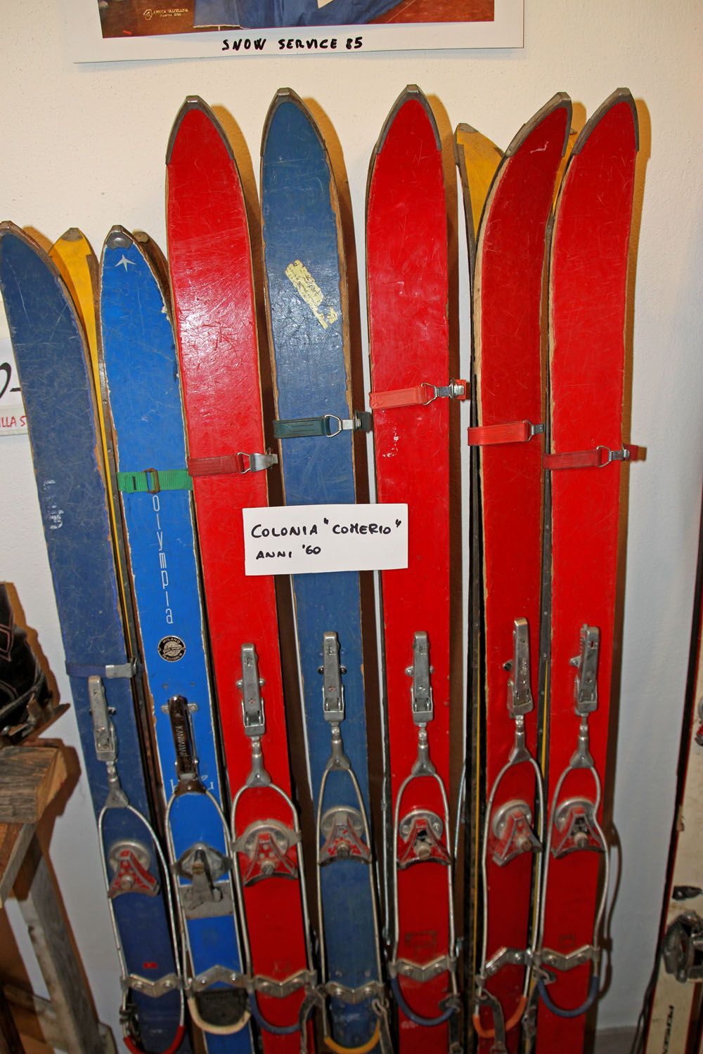 Tra le centinaia di pezzi che i cinque amici hanno raccolto ve ne sono alcuni rari o di notevole interesse. Tra i primi, almeno il pezzo unico di sci ripiegabile da zaino datato fine 1800, lo sci senza puntale Altenhofer, un paio di sci marcati Sertorelli con i cinque cerchi olimpici, quelli marcati Ferrari e Lamborghini, gli sci dei ragazzi creati da Rolly Marchi, lo scarpone-sci, il completo sci-scarponi fatto con doghe di botti, l'attacco con aggancio automatico, gli sci donati dall'ex preparatore (aprichese) della valanga azzurra Luciano Panatti, ecc.