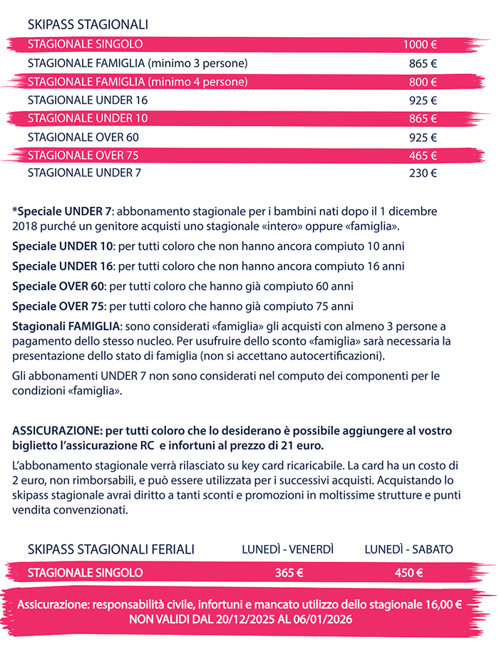 Prezzi Skipass