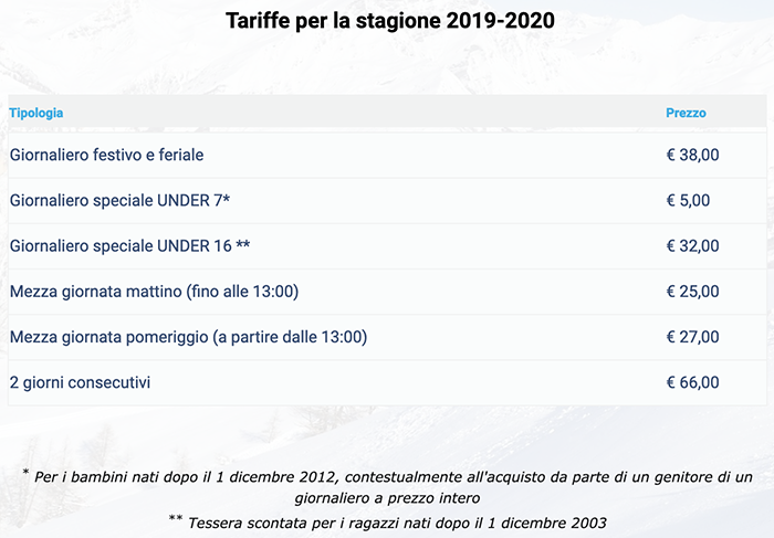 Skipass Giornalieri Bardonecchia 2019/2020