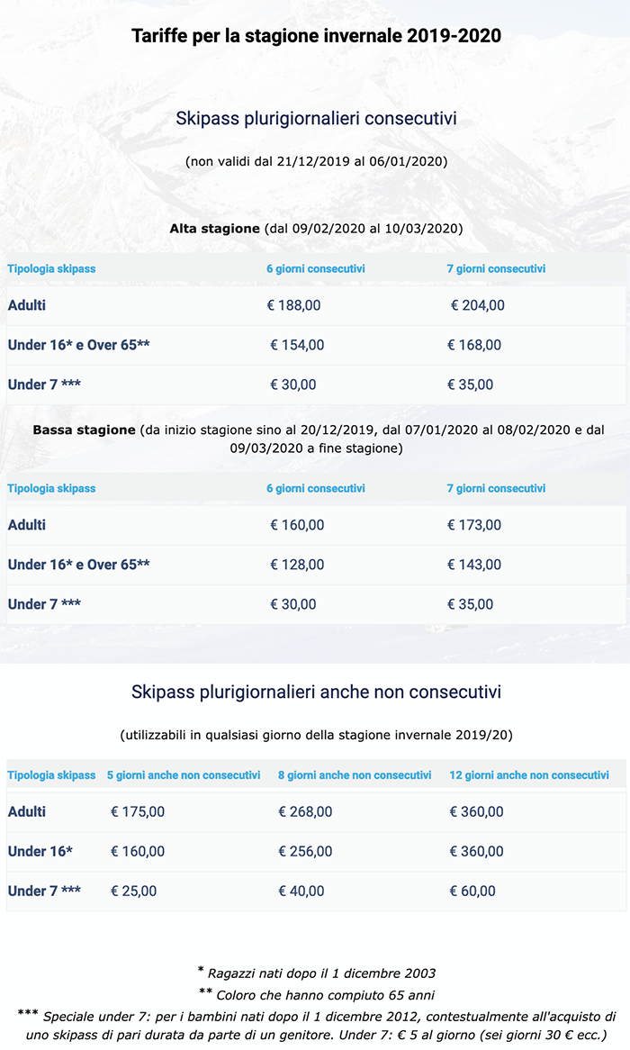 Skipass Pluri-Giornalieri Bardonecchia 2019/2020
