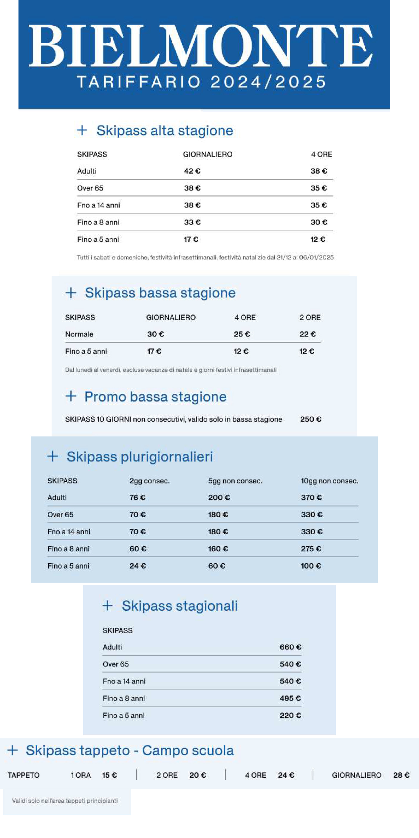 | Passo del Tonale | 29/30 | 30-150 cm |