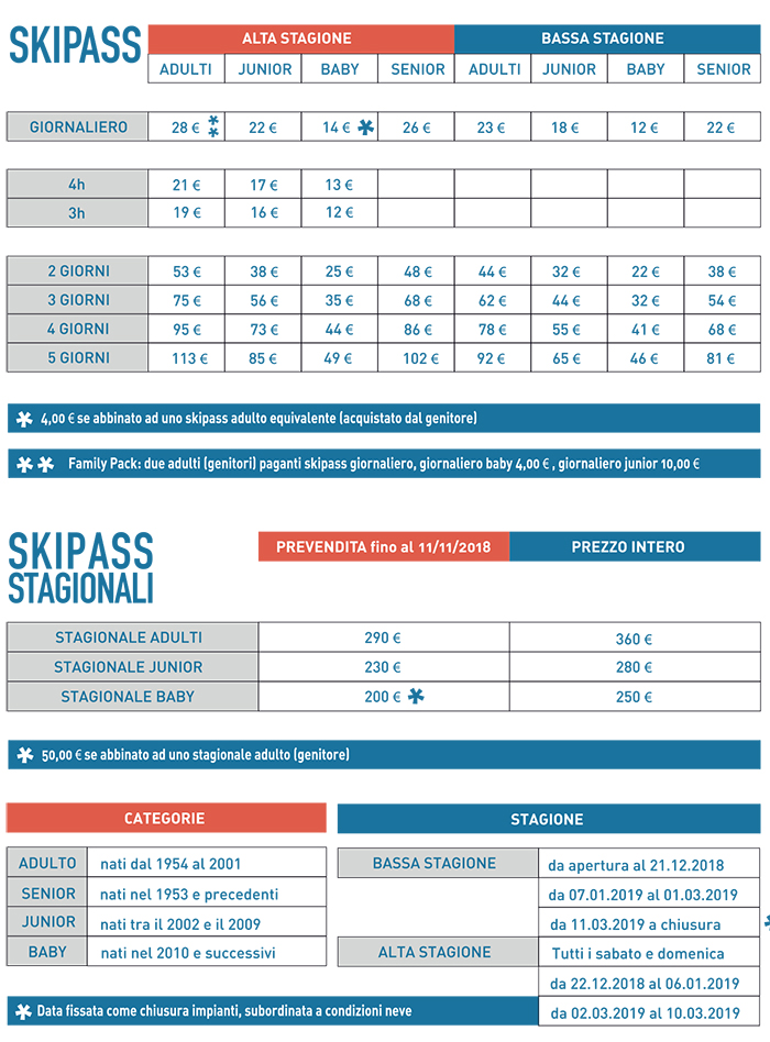 | Passo del Tonale | 29/30 | 30-150 cm |