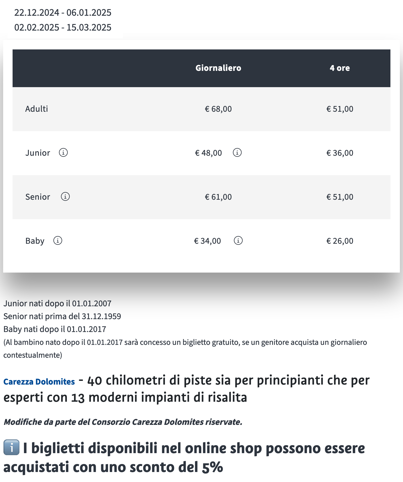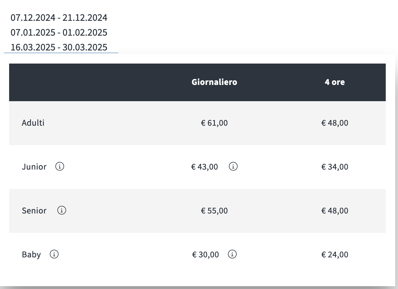 | Passo del Tonale | 29/30 | 30-150 cm |