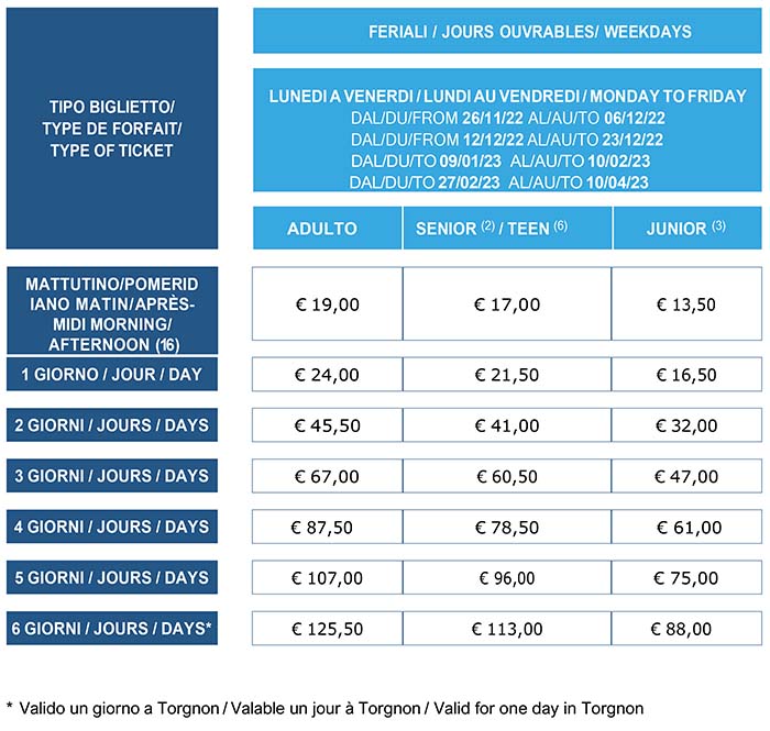 Skipass Feriali Chamois 2022/2023