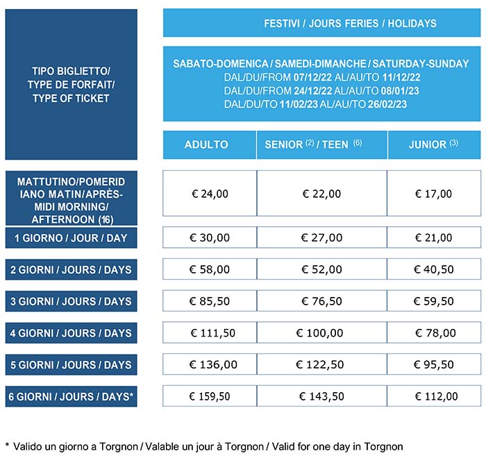 Skipass Festivi Chamois 2022/2023