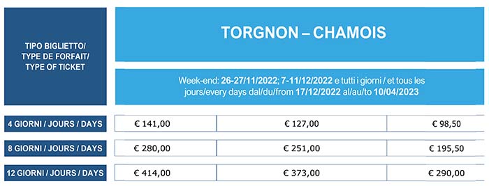 Pluri-giornalieri Valtournenche Chamois e Torgnon 2022/2023
