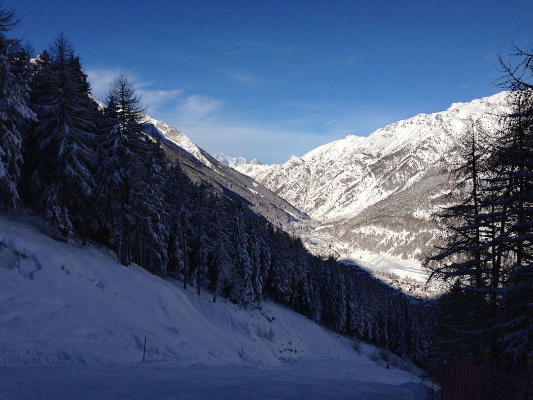 Da subito stupisce il fatto di trovare una funivia che parta direttamente dal paese, così come affascina il panorama che permette di ammirare sul fondovalle il Monte Bianco 4.810 metri. Giunti in cima alla seggiovia Grand Crot a 2.242 metri lo scenario si apre su una conca naturale circondata da un anfiteatro di vette.