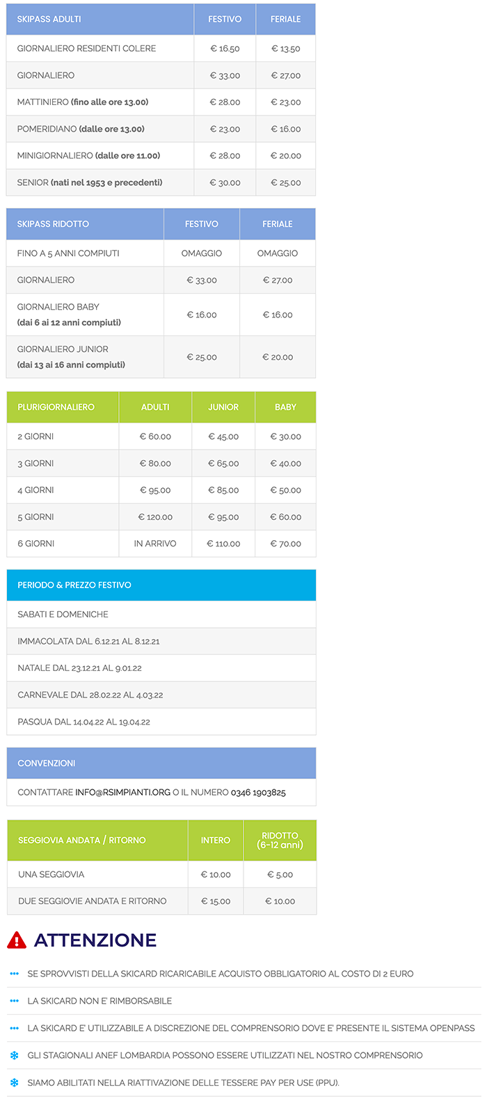Prezzi Skipass