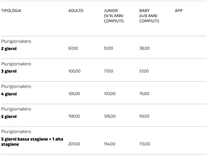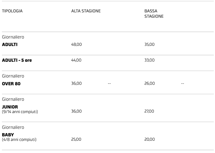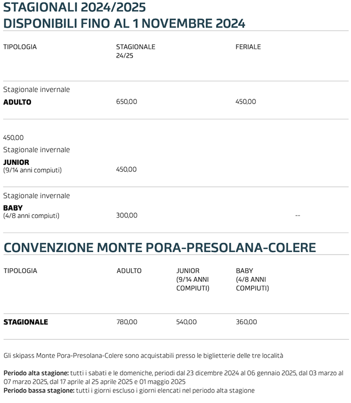 Skipass Plurigiornaliero Bassa Stagione Colere 2024/2025