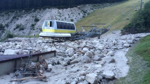 San Vito di Cadore. Una bomba d'acqua sommerge pista e impianto della seggiovia