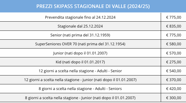 Prezzi Skipass