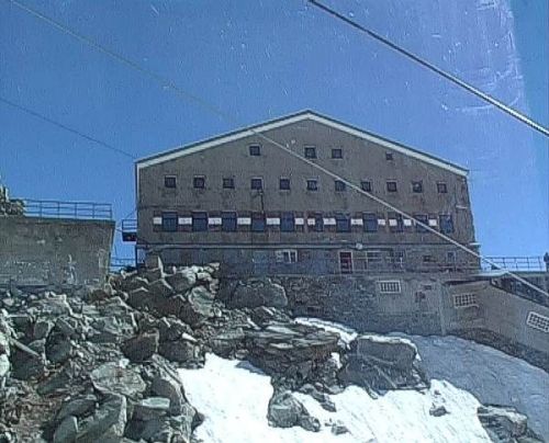 Rifugio Torino Poco dopo la partenza dalla stazione del Rifugio Torino Vecchio, diretti verso la punta Helbronner. Alla nostra destra sfila l'edificio del Rifugio Torino Nuovo. A destra della foto parte la scala coperta che porta al Vecchio.