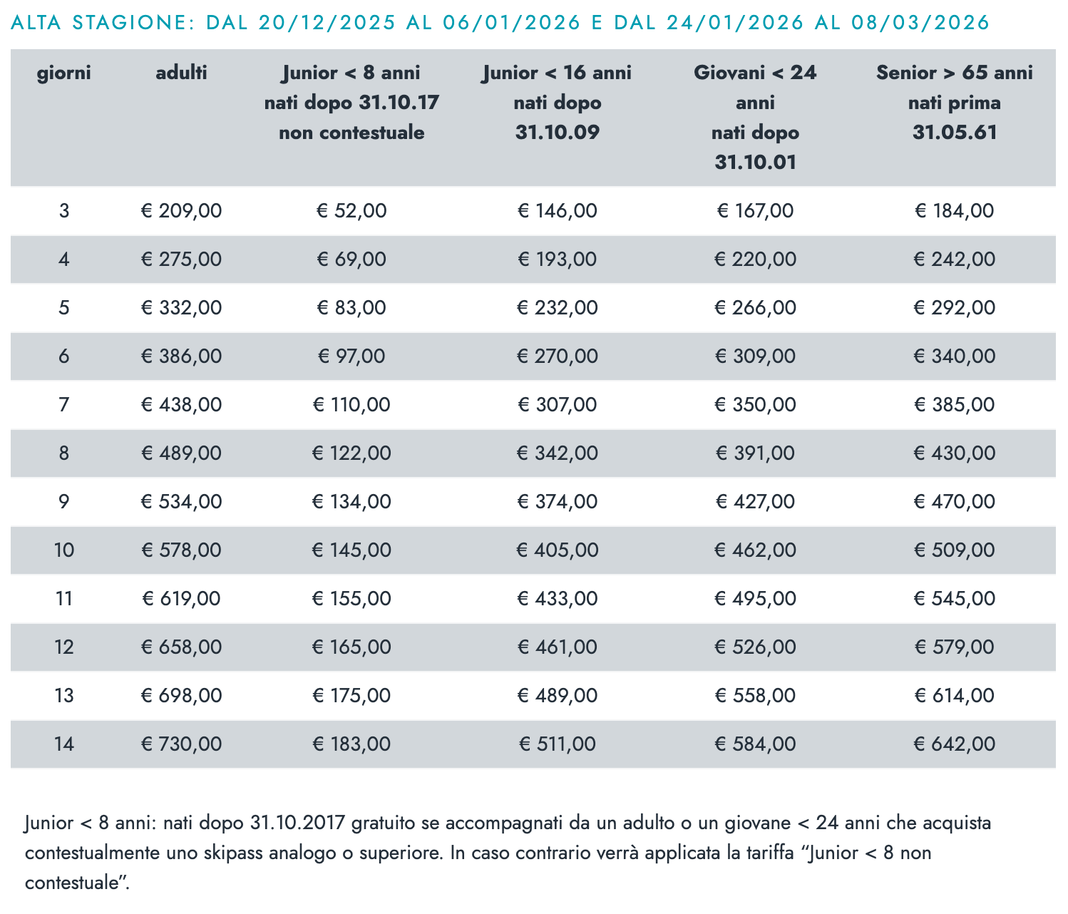 Skipass Plurigiornaliero Alta Stagione Valle dAosta 2025/26