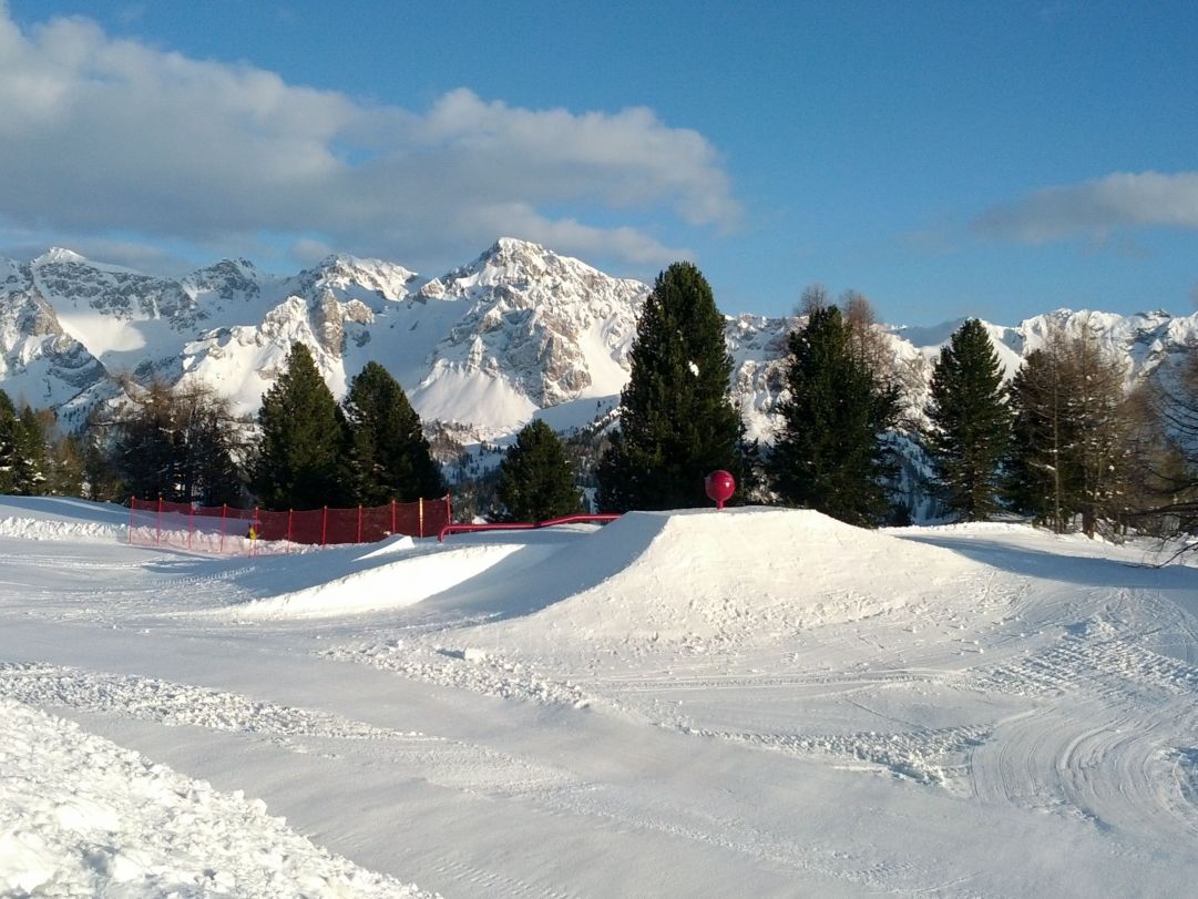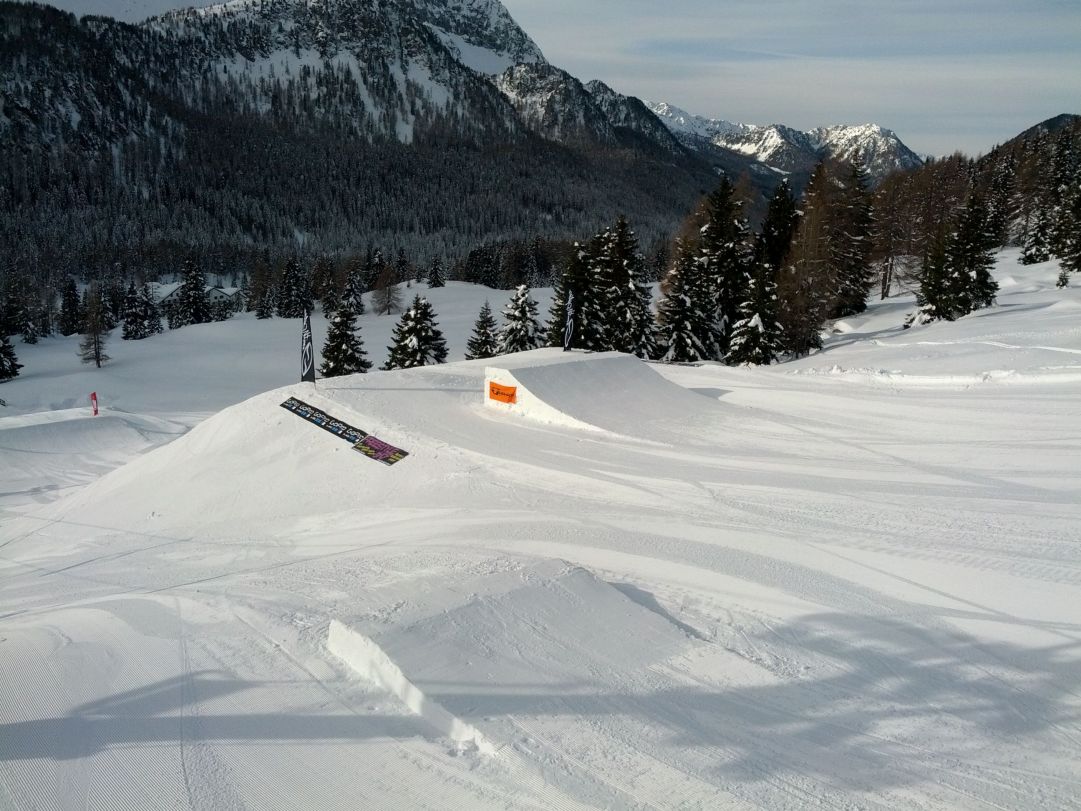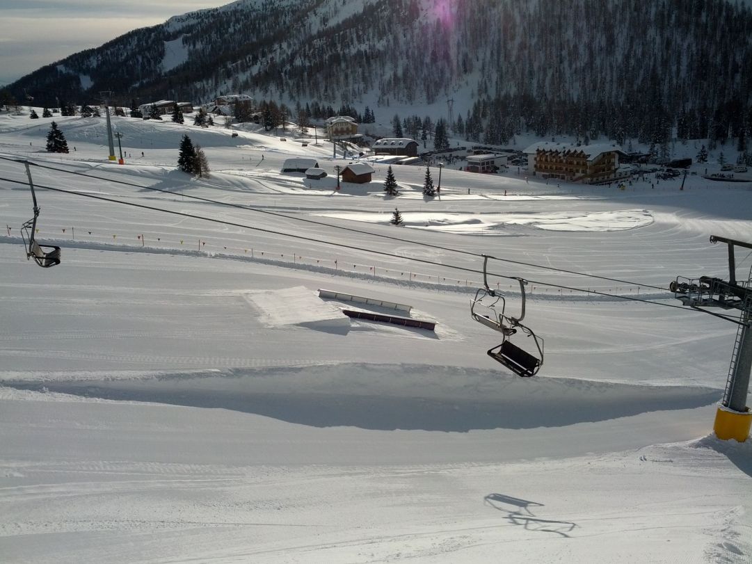 Sulla linea small-jibbing si alterneranno kicker da 3 metri fino al funbox da 6 metri. La linea è affiancata da rail, tuboni e box di diverse misure che portano all’ultimo funbox, con un divertente lollipop da bonkare e un rainbow da percorrere tutto fino alla fine giocando con il proprio equiibrio. I ragazzi dello snowpark vi avvisano non vi vogliono svelare tutto durante la stagione sicuramente potrete trovare variazioni nel setup e qualche struttura in più nuova per non smettere mai di divertirvi.