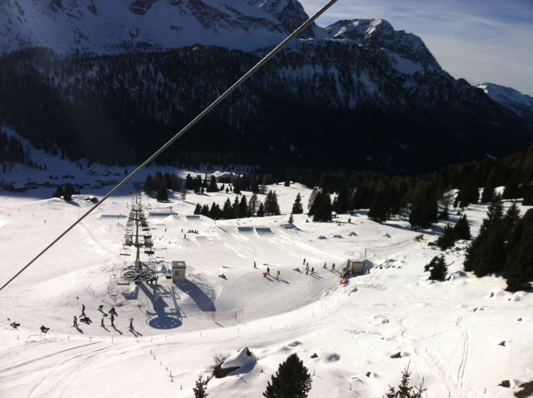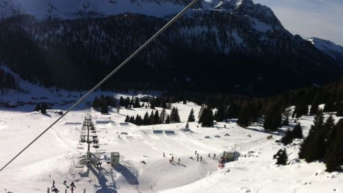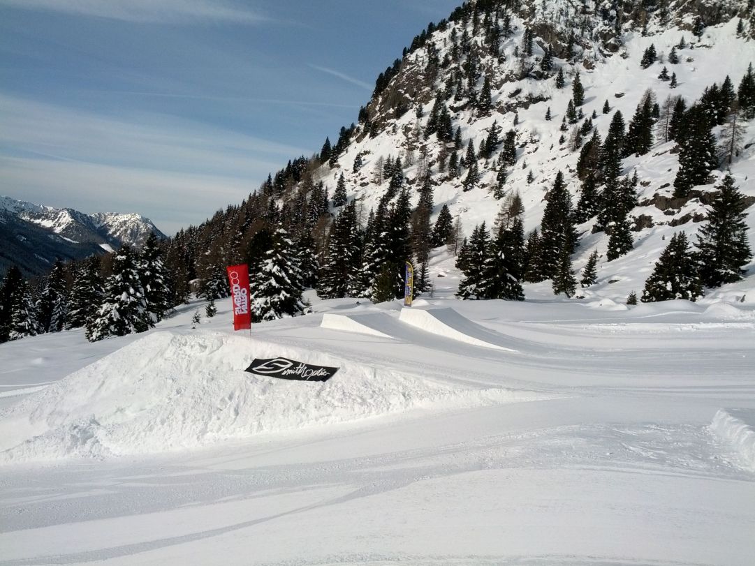 Passo San Pellegrino si trova a quota 1918 metri e questo valico delle Dolomiti che porta verso Falcade ospita l'omonimo SanPe Snowpark.