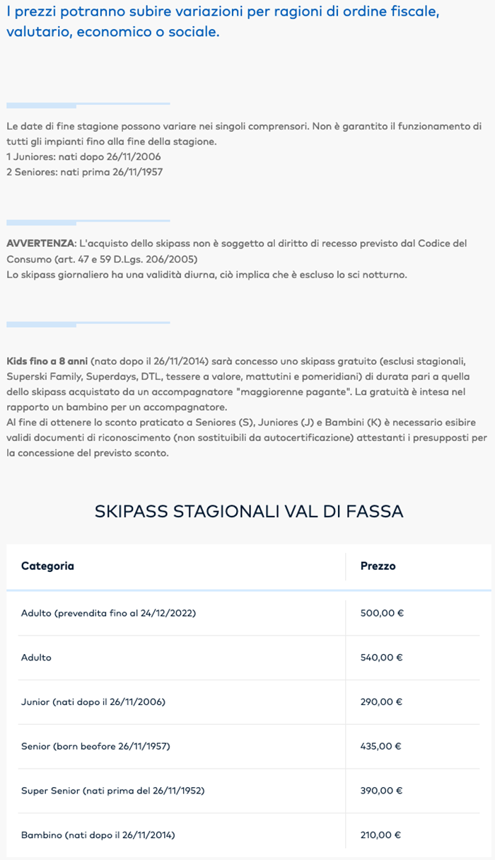 Skipass Alta Stagione Val di Fassa 2022/2023