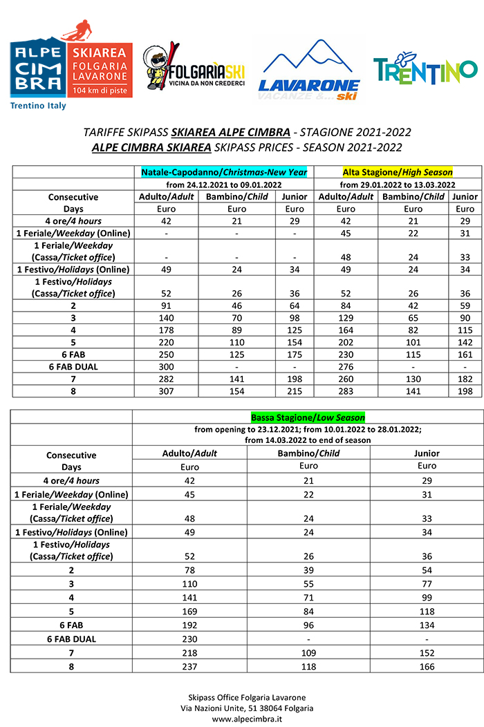 Skipass Folgaria Lavarone Fiorentini 2021/2022