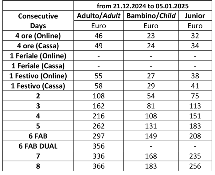 Skipass Natale/Capodanno Alpe Cimbra 2024/2025