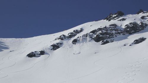 Per quanto riguarda la discesa le opzioni possono essere diverse sempre a seconda delle condizioni: si può ridiscendere nel vallone finale di risalita che porterà verso la zona di Arnouvaz e permetterà di ricongiungersi con la pista n.6 di rientro verso La Thuile, oppure nella prima parte si potranno cercare alcuni canali impegnativi che riportano in questo vallone incontaminato ed esclusivo.