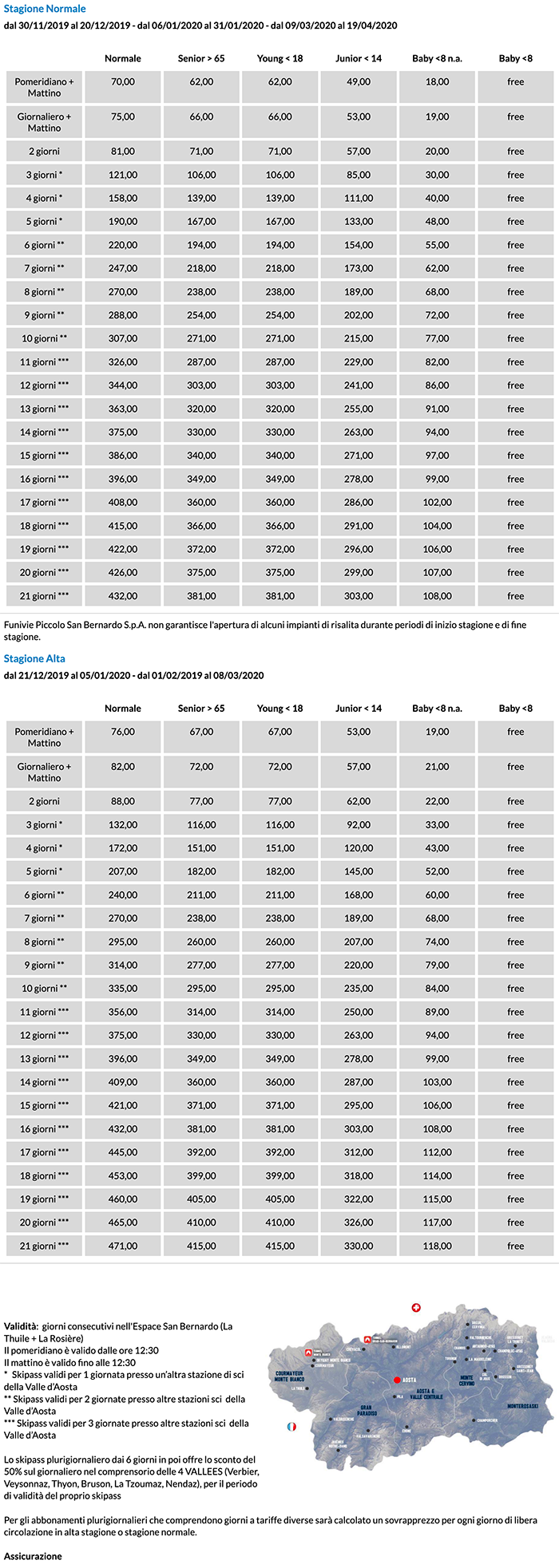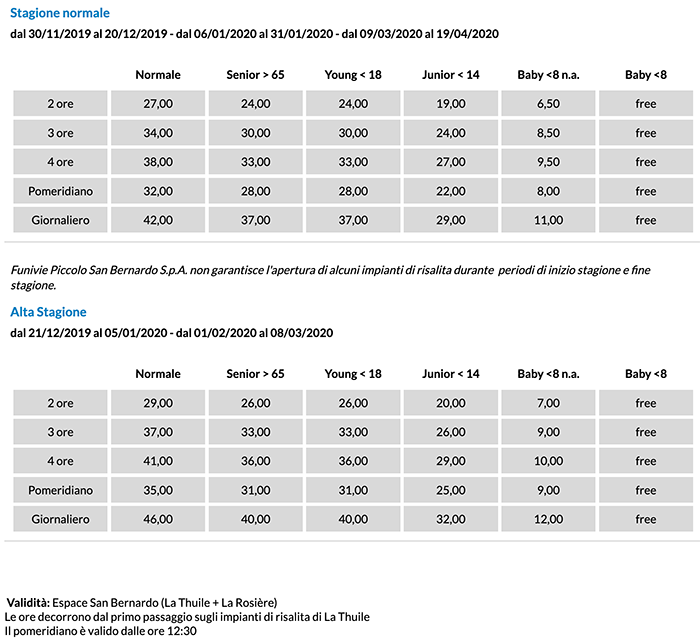 Skipass La Thuile Piccolo San Bernardo 2019/2020
