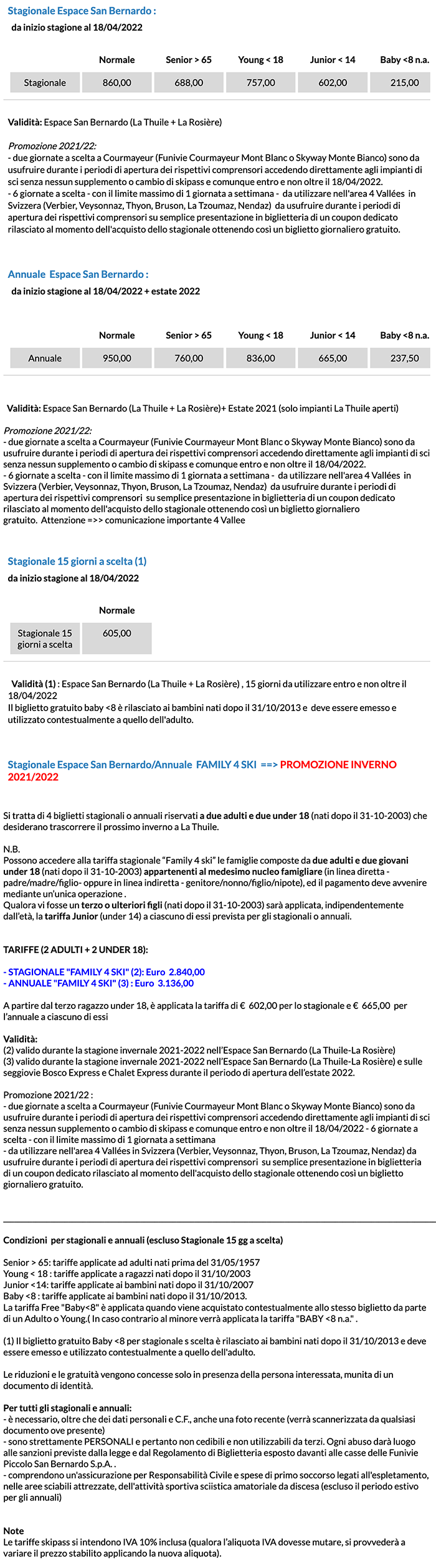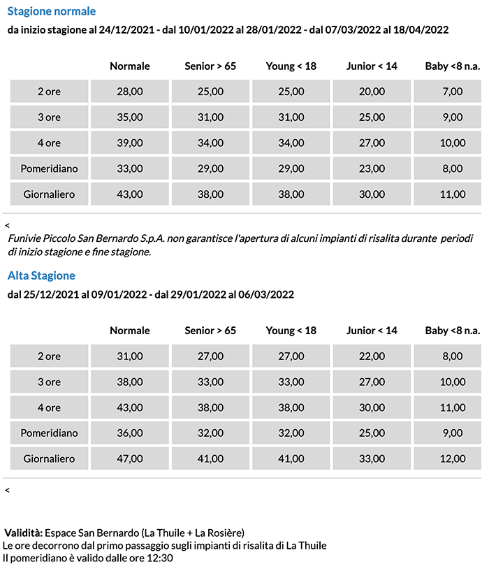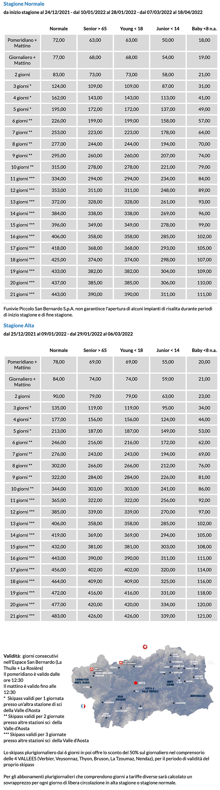 Skipass La Thuile Piccolo San Bernardo 2021/2022