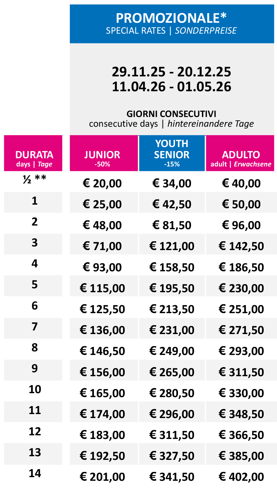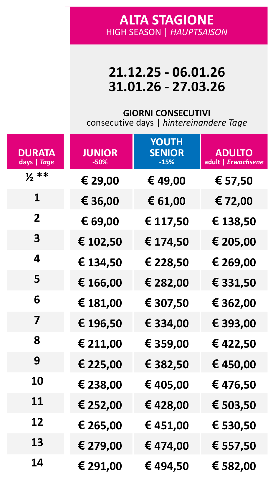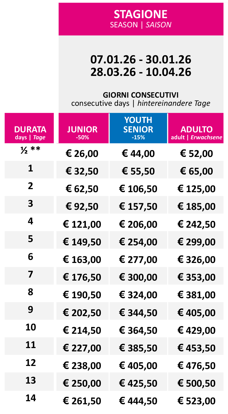 Prezzi Skipass