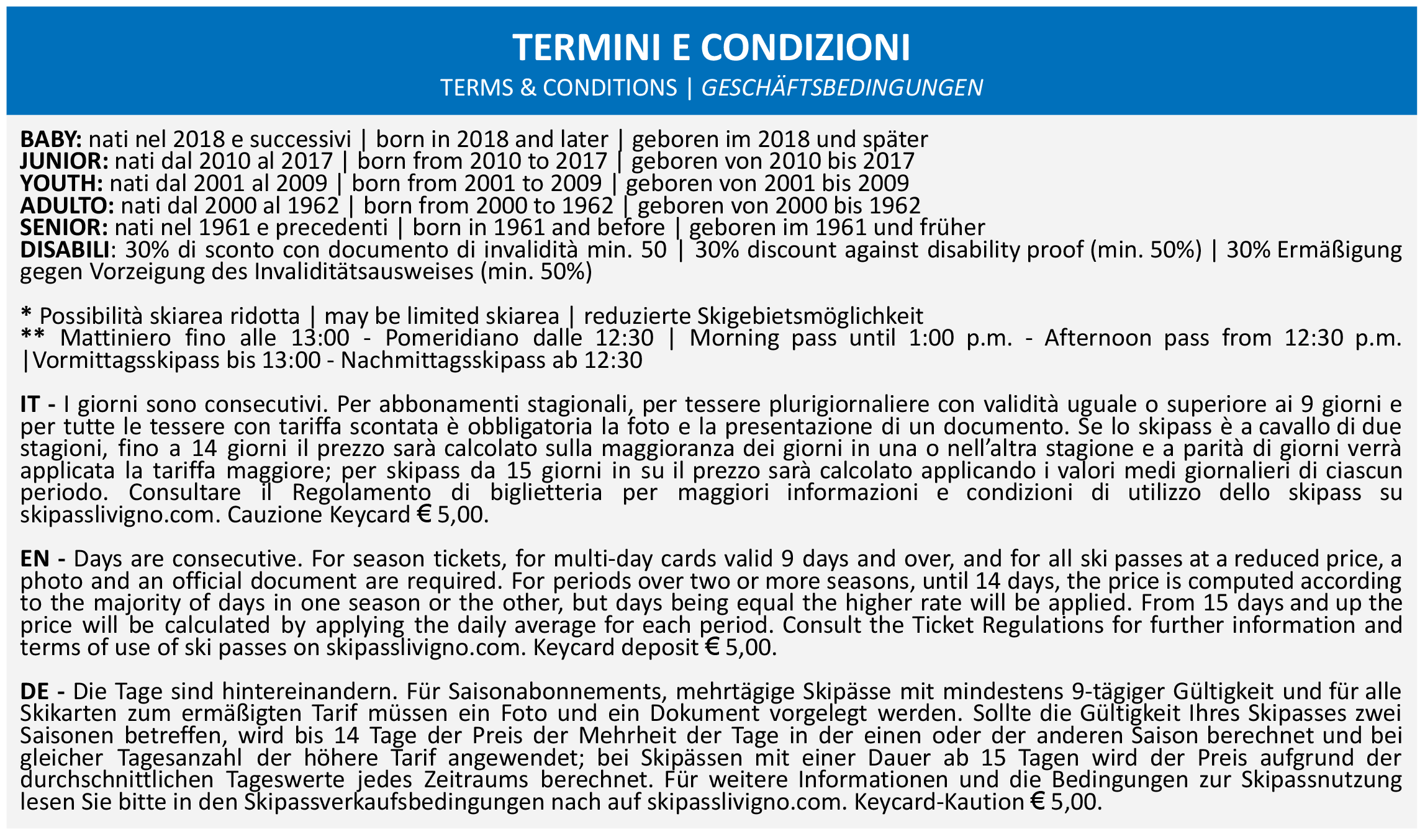 Skipass Stagione Livigno 2025/2026