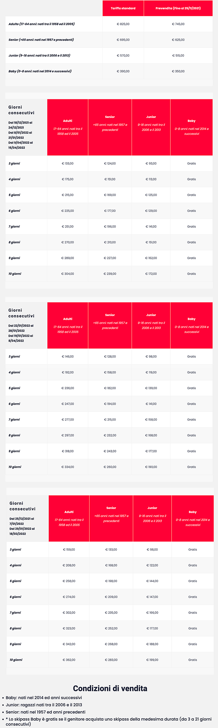 Skipass Alta Valtellina Stagionali e Plurigiornalieri 2021/2022