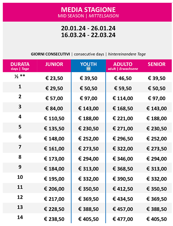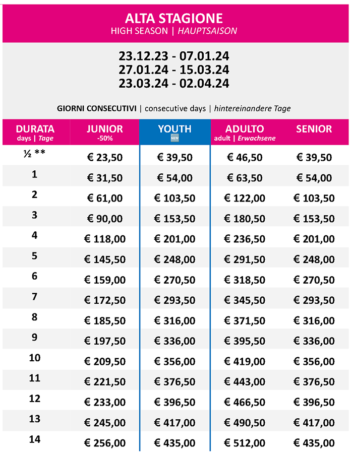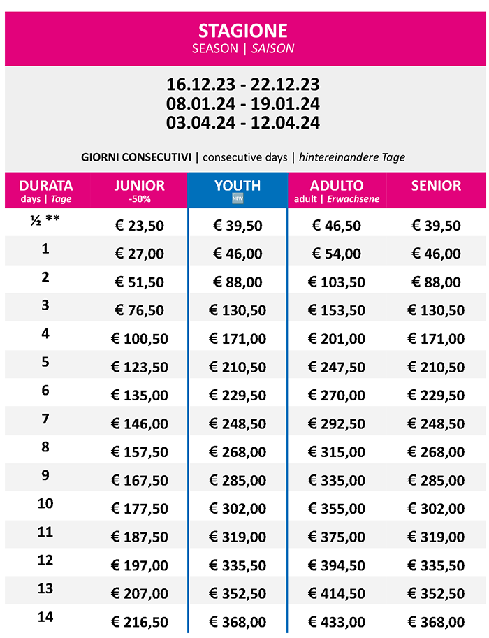 Prezzi Skipass