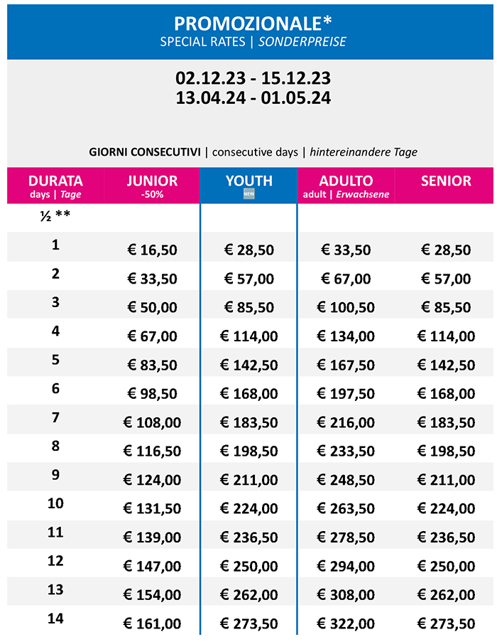 Skipass Livigno 2023/2024 Altre Tariffe