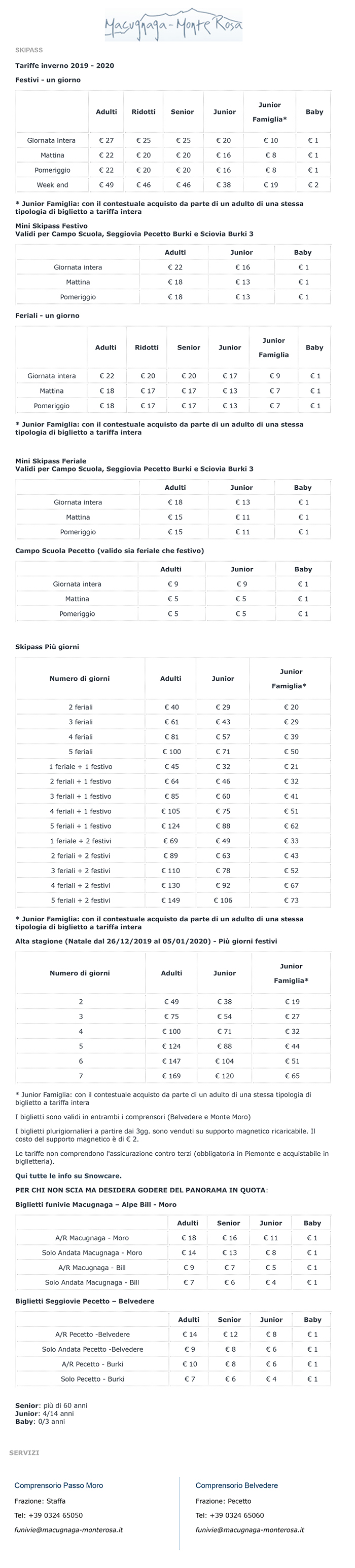 Skipass Macugnaga Belvedere Monte Moro 2019/2020