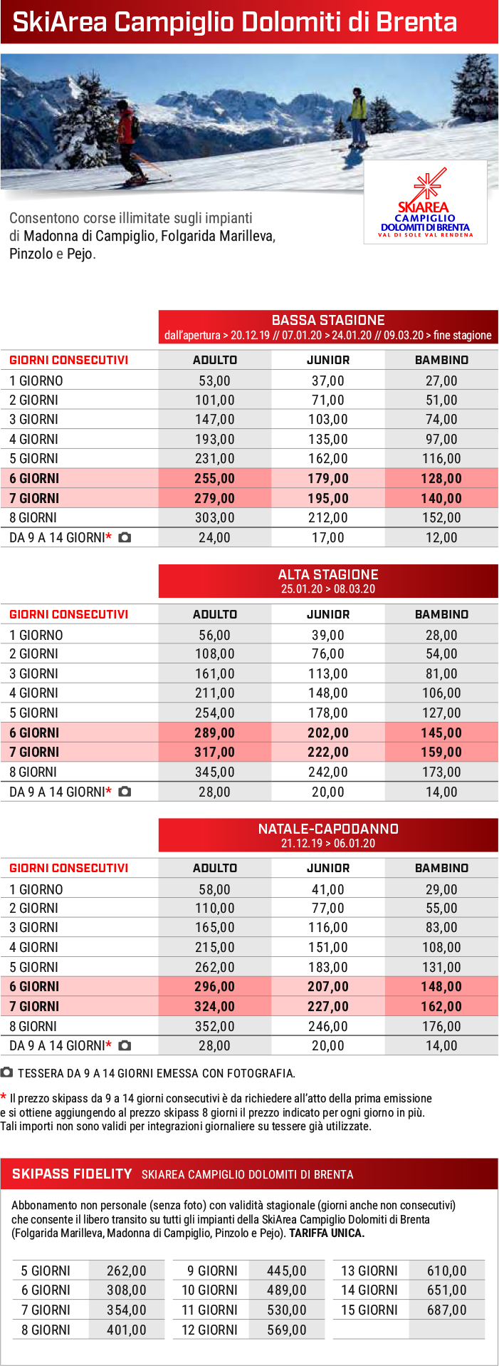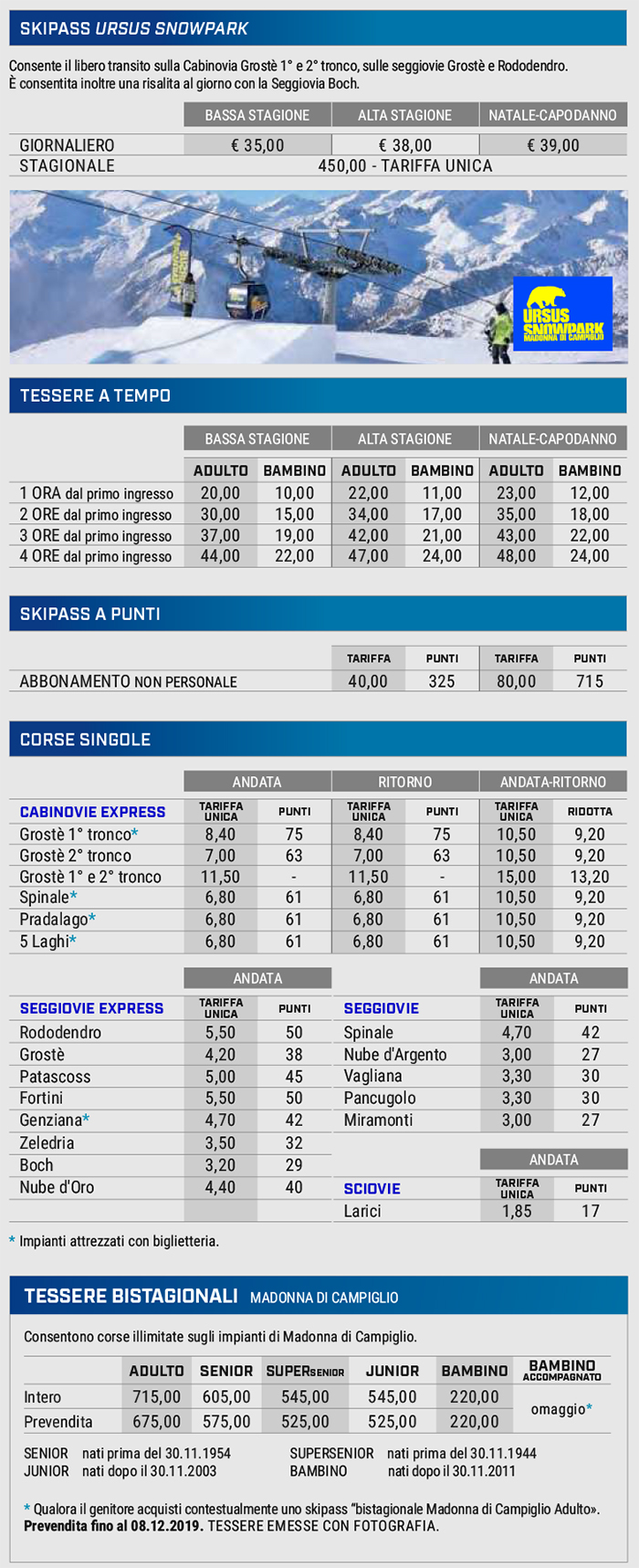 Skipass Madonna di Campiglio, Folgarida, Marilleva, Pinzolo 2019/2020