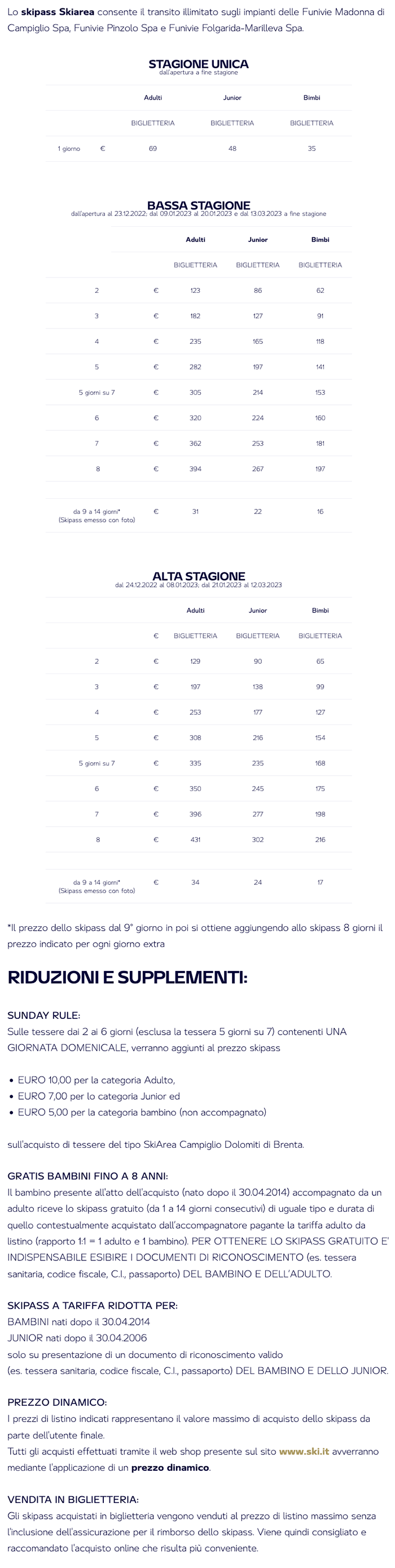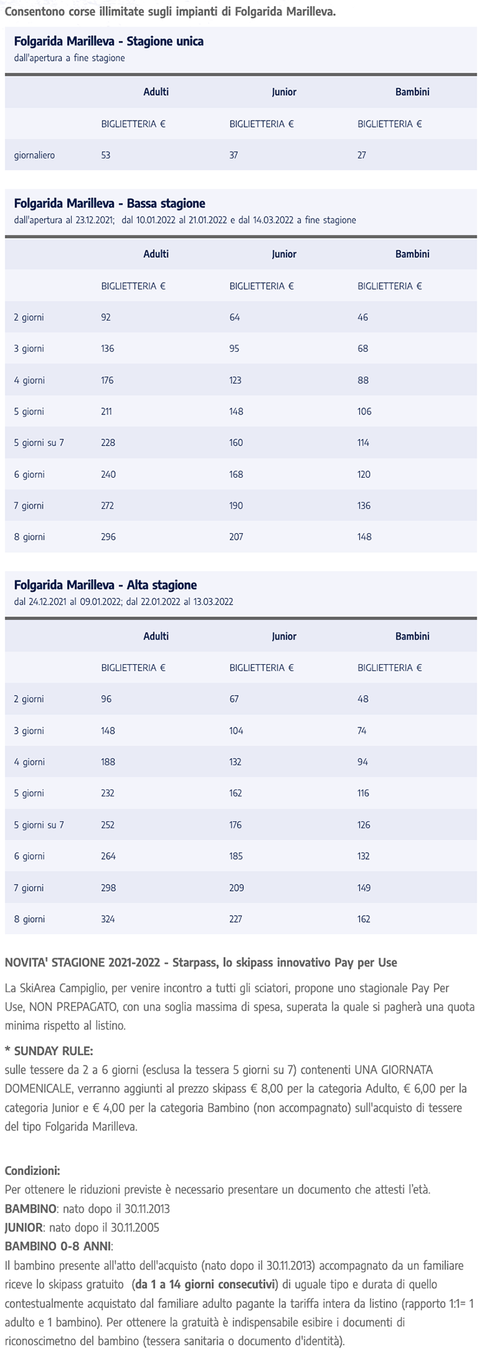 Skipass Madonna di Campiglio, Folgarida, Marilleva, Pinzolo 2022/2023