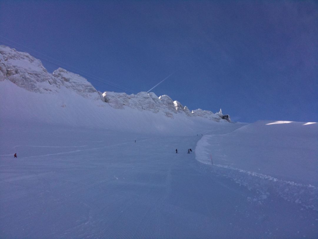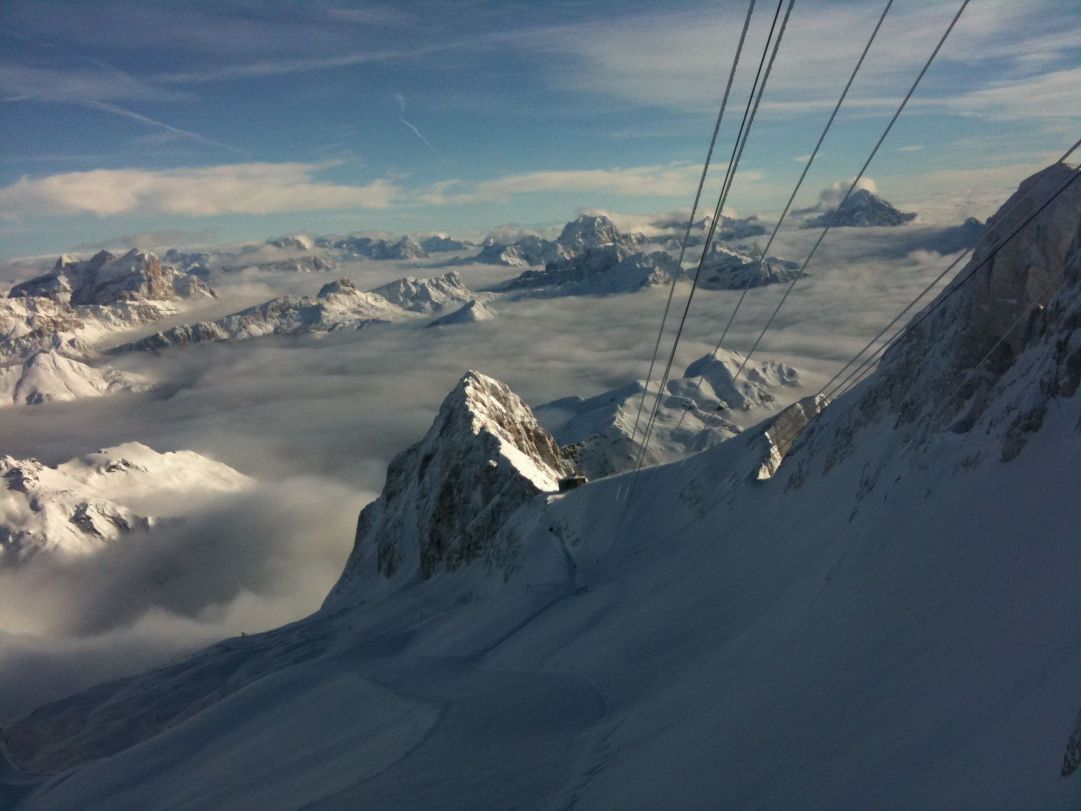 Si raggiunge con la funivia in tre tronconi che parte da Malga Ciapela, lato bellunese e già dall’impianto di risalita si intuisce che non sarà la solita pista. Primo cambio ad Antermoja 2.362 mt, poi a Serauta 2.944 mt e da lì si arriva a Punta Rocca, il tutto in soli 12 minuti!