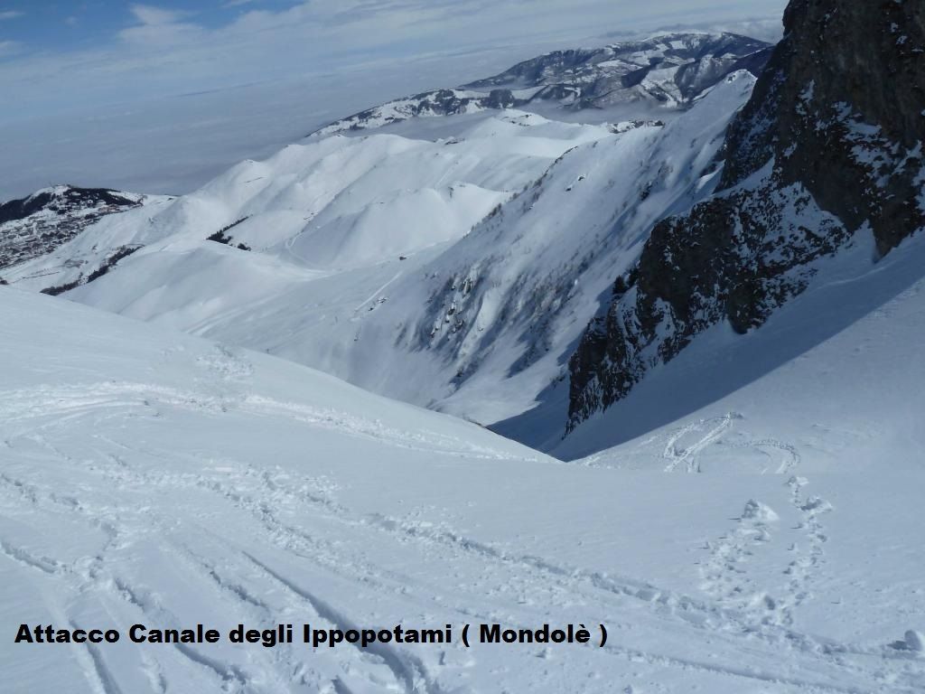 Le opzioni di discesa sono molte: Verso la Balma molto esposto al sole e a sud, consigliato durante la primavera quando si scia sul Firn. Il Canale degli Ippopotami bello tutto l'anno perchè poco esposto al sole e dove si arriva in prossimità del Lago delle Scalette 1860 mt. Slm. e della sciovia Rocche Giardina. La parete Nord della gara di Freeride a cui ho accennato prima, bella tutto l'anno e dove si può trovare quasi sempre la powder, che arriva in prossimità della partenza delle sciovie Pogliola e Rocche Giardina 1601 mt. Slm.