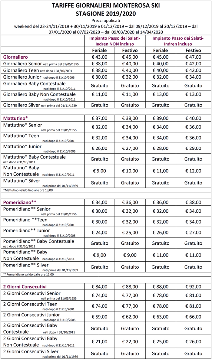 Skipass Giornalieri Monterosa-Ski 2019_2020