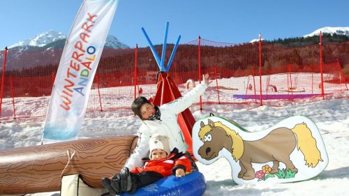 Nella skiarea della Paganella, in Trentino, il divertimento per i bambini è assicurato. Giochi, colori e neve aspettano i più piccini al Kinder Club di Andalo con tre angoli di paradiso: il Baby Park Dosson, il Kids GaggiaPark BiblioIgloo e il Maso Effo. Il primo si trova a quota 1480 metri e si tratta di un’area dedicata ai gonfiabili assistita da uno staff di animazione che farà divertire e giocare tutti i bambini. In caso di brutto tempo, i piccoli verranno portati si nel nuovo rifugio, raggiungibile con la telecabina 8 posti "Andalo-Doss Pelà” dove c’è anche la possibilità di mangiare tutti insieme.