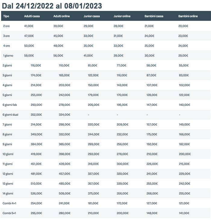 Skipass Paganella Andalo Capodanno