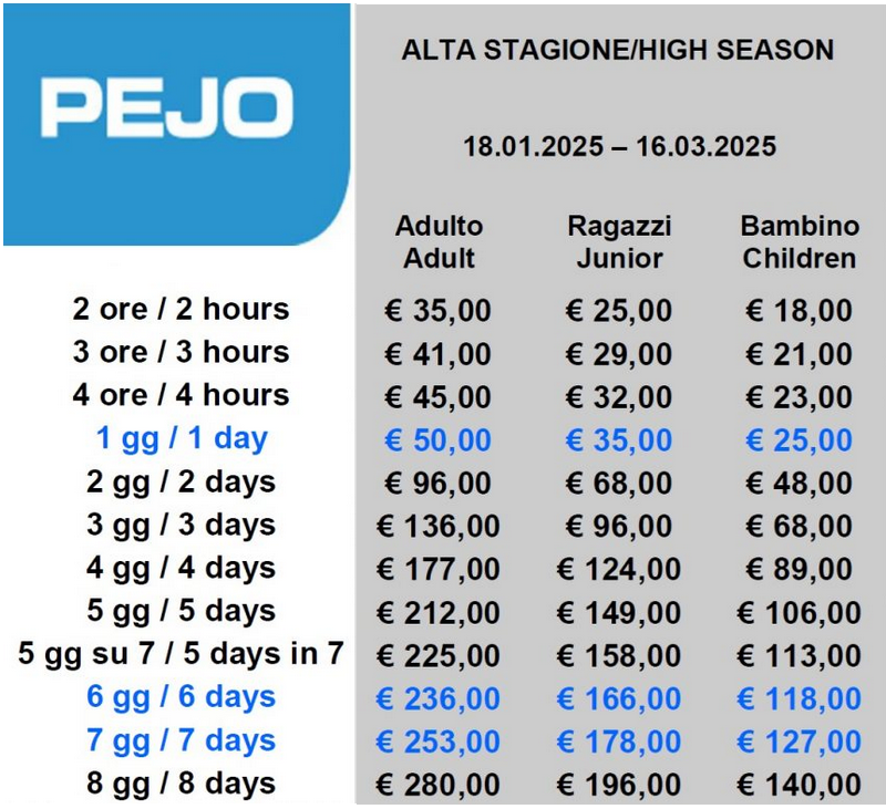 Skipass Alta Stagione Pejo Val di Sole 2024/2025