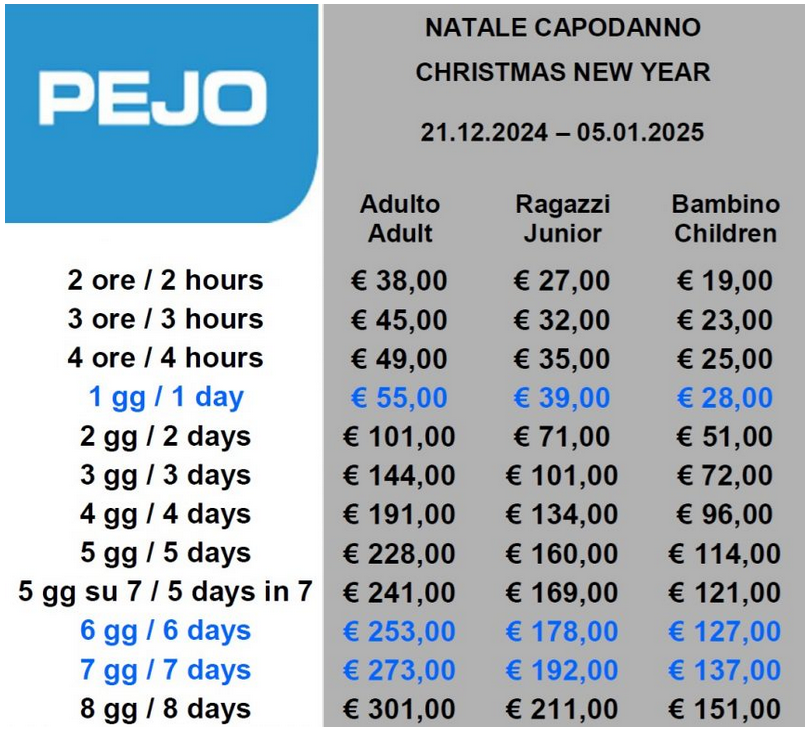 Skipass Natale Capodanno Pejo Val di Sole 2024/2025