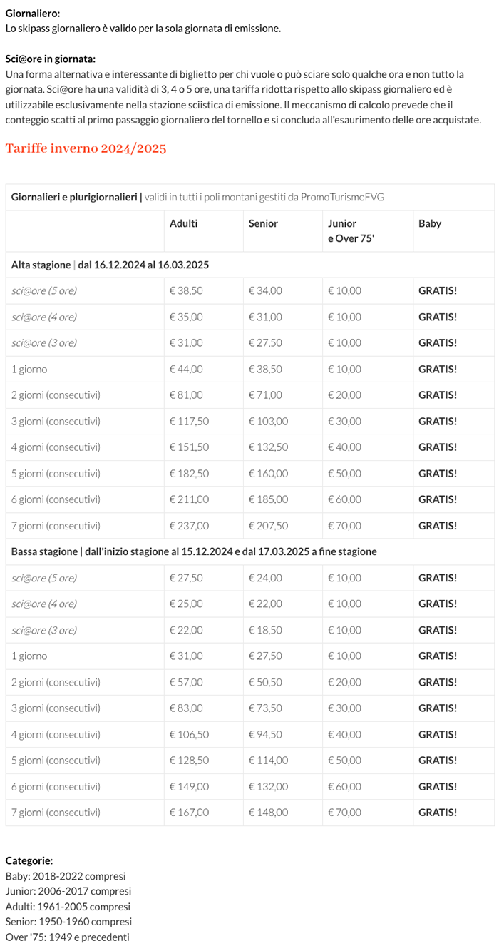 Prezzi Skipass Giornaliero Sci@ore Piancavallo 2025/2026