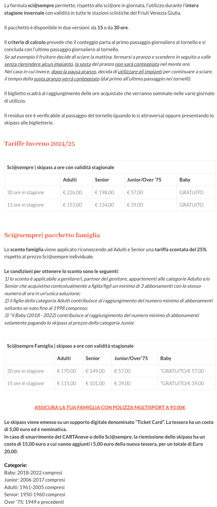 Prezzi Skipass Giornaliero Sci@sempre Piancavallo 2025/2026
