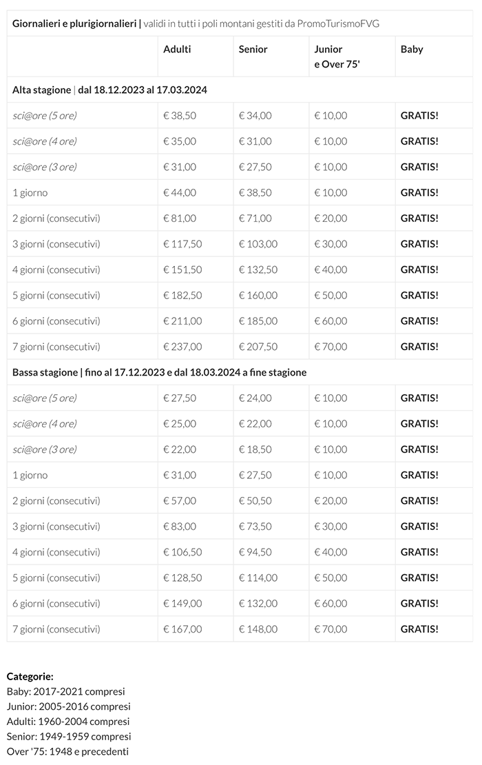 Skipass Giornalieri Plurigiornalieri Piancavallo 2023/24