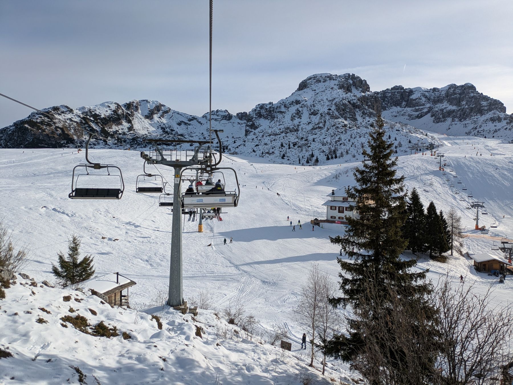 A poca distanza dalla stazione di arrivo della cabinovia è possibile scegliere di risalire da 3 differenti seggiovie quadriposto: Fortino, Ongania e Orscellera.