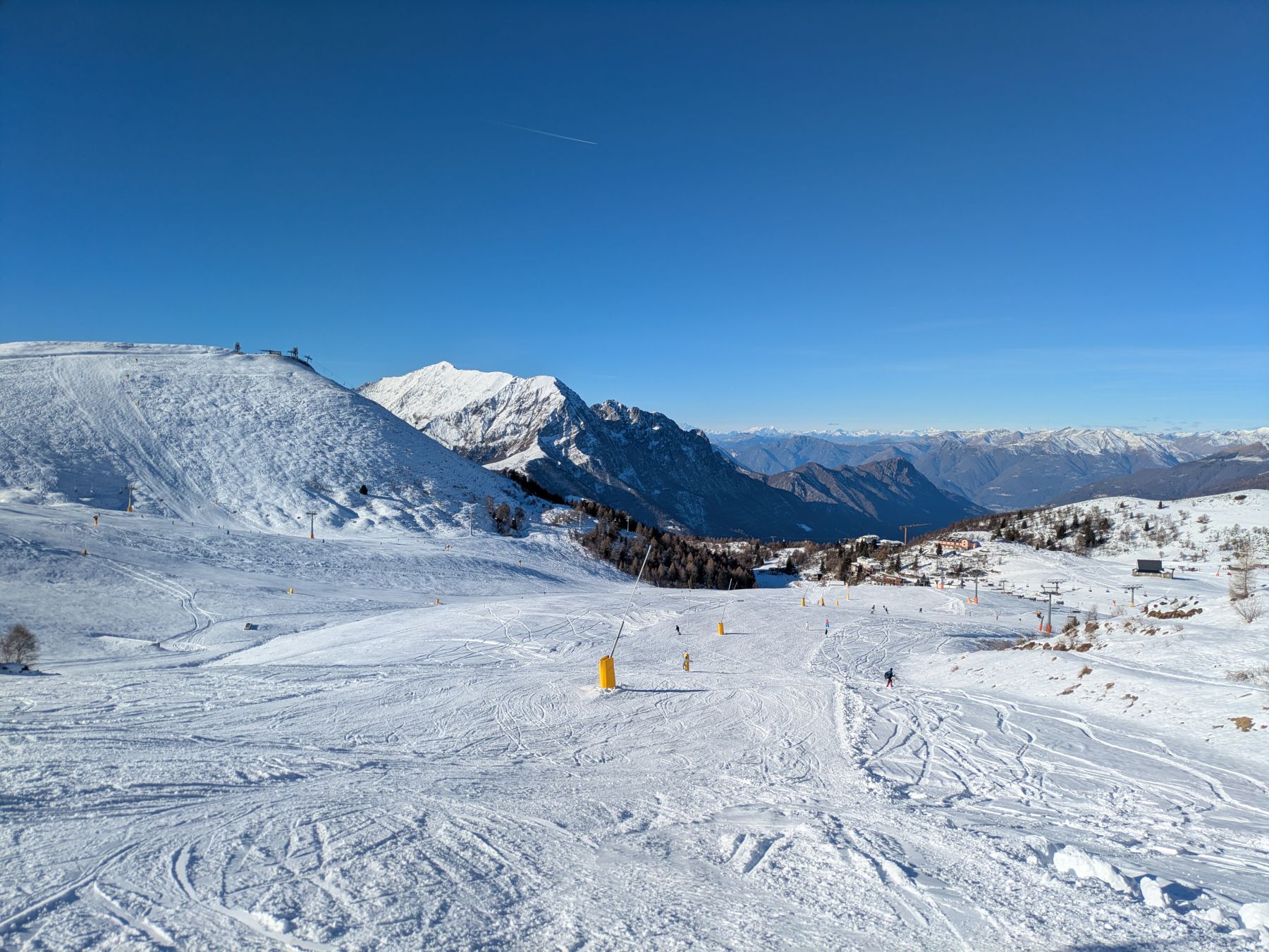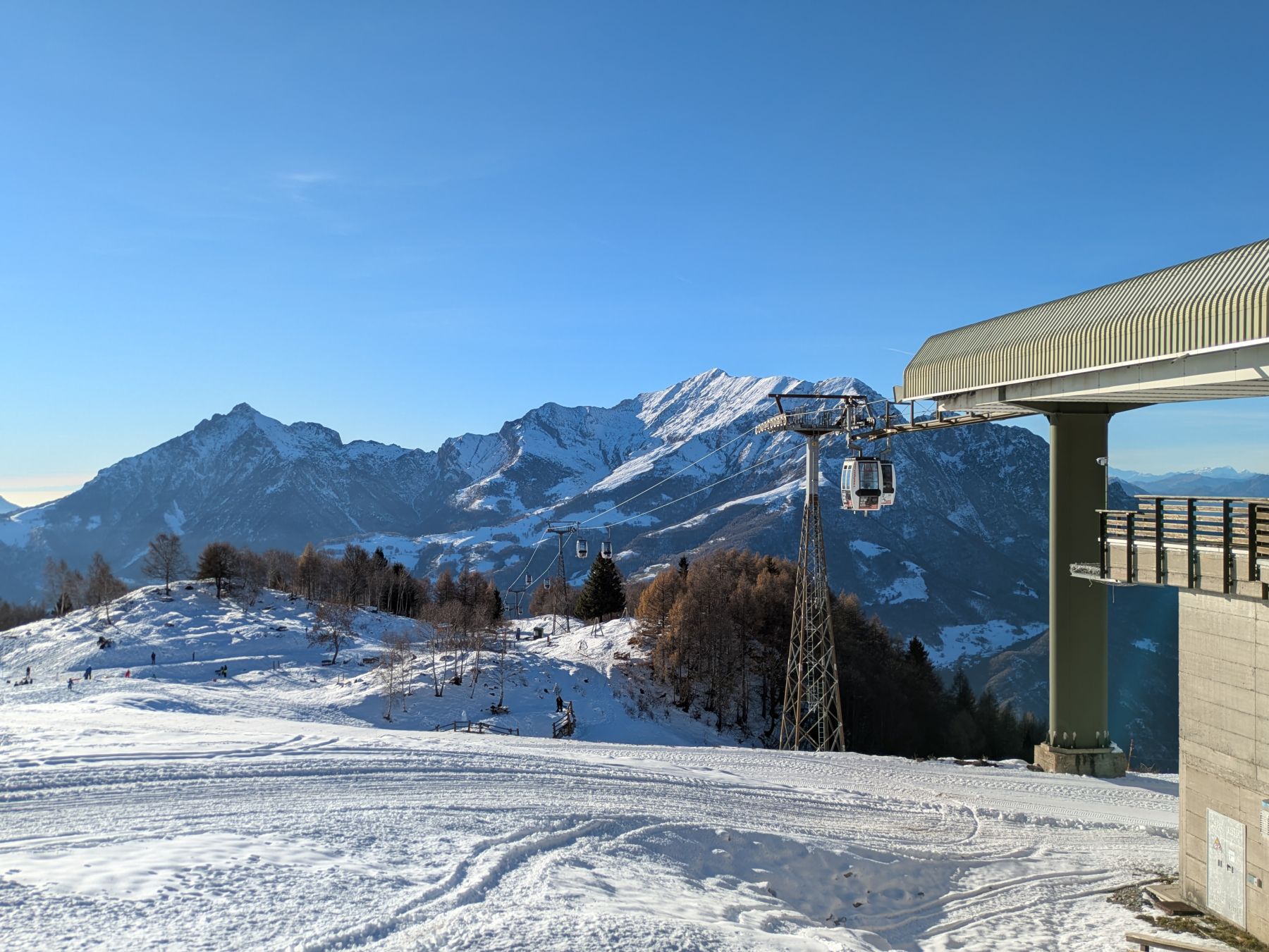 Nell'immagine l'area di arrivo della cabinovia con il panorama verso le Grigne.