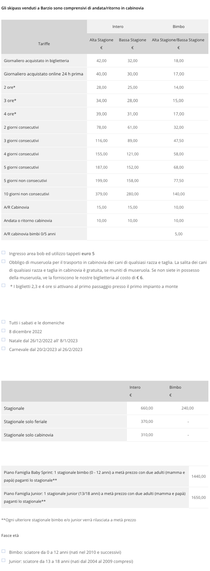 | Passo del Tonale | 29/30 | 30-150 cm |